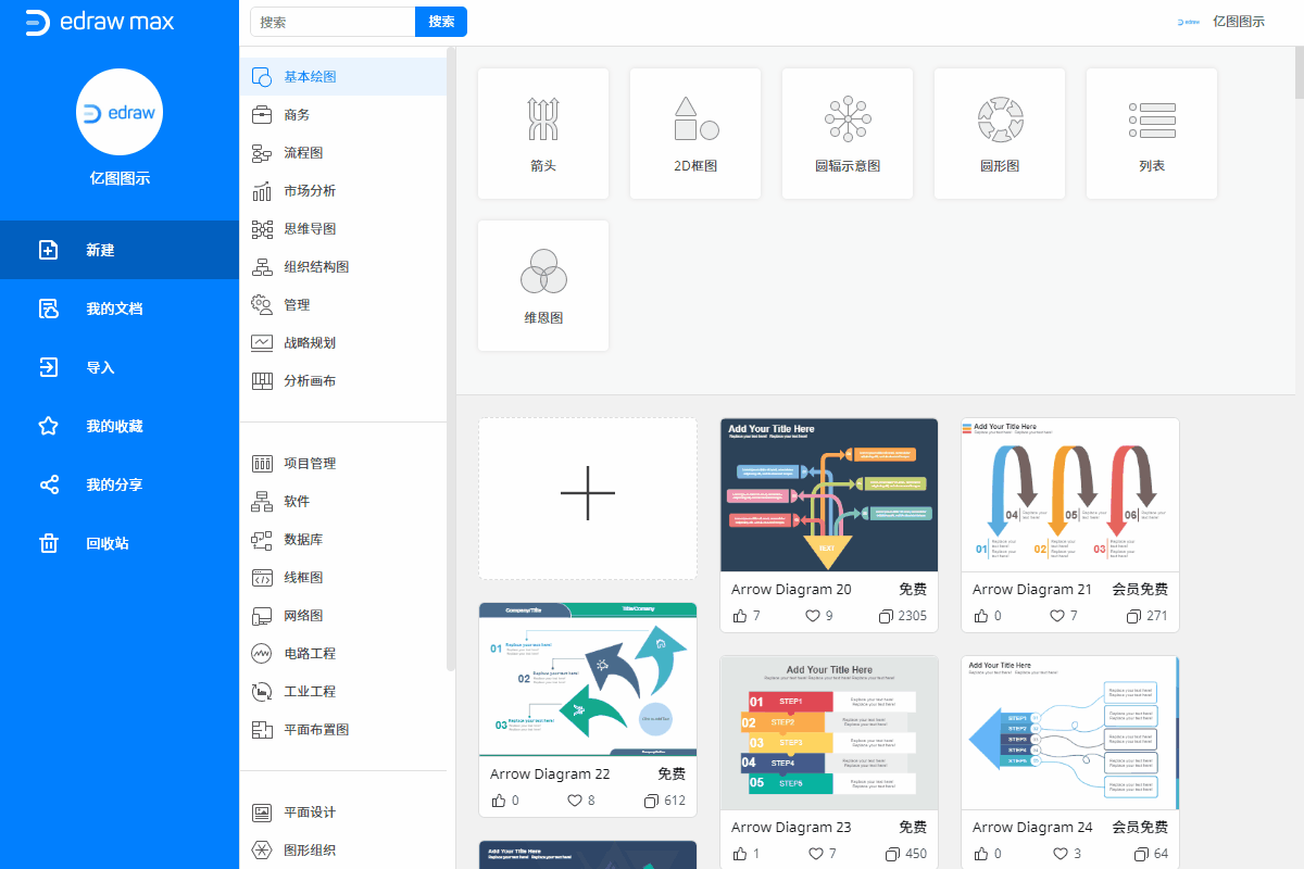 在首页浏览并选择自己喜欢的模板,可点击收藏,或直接打开模板进行编辑。